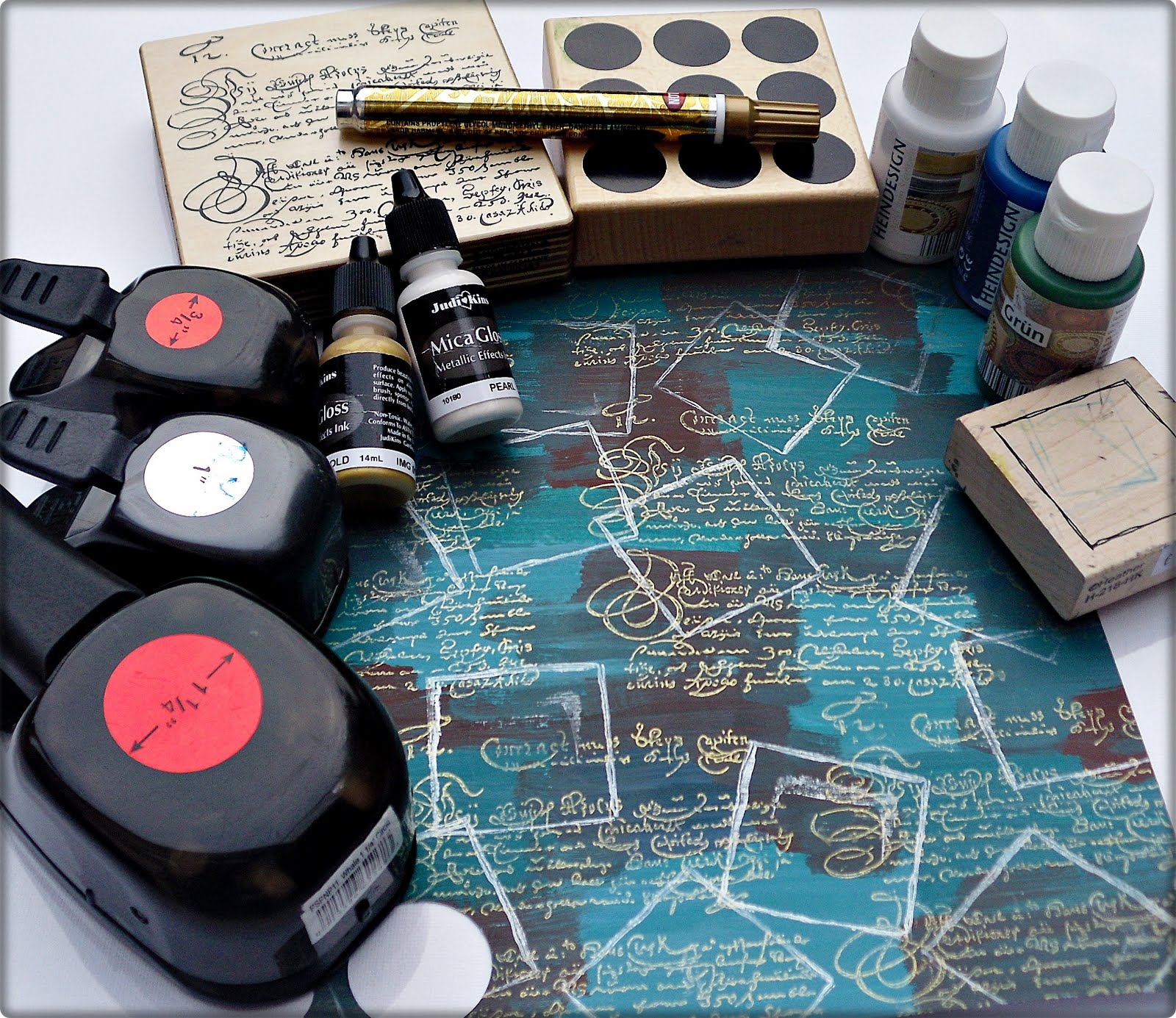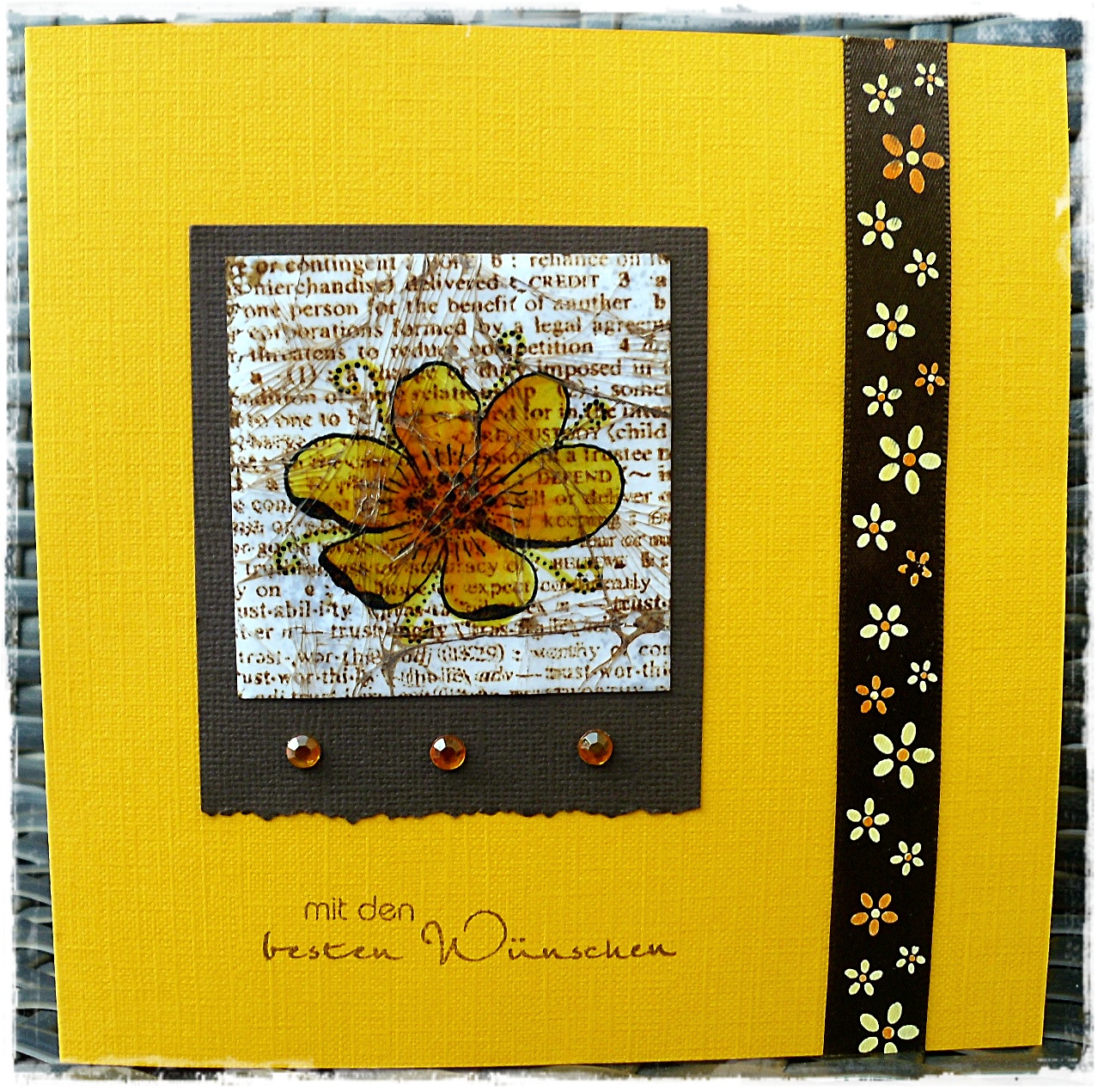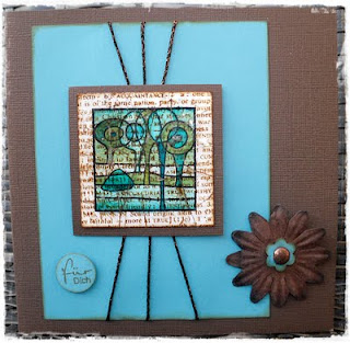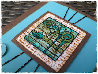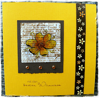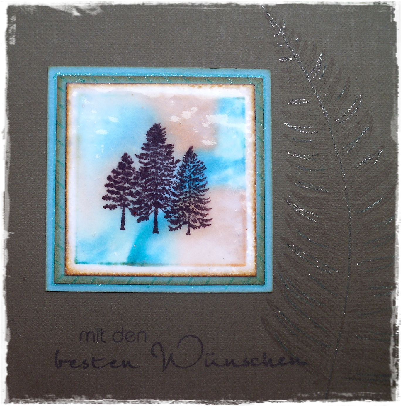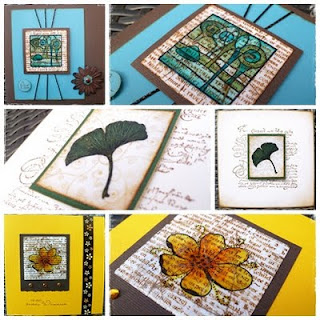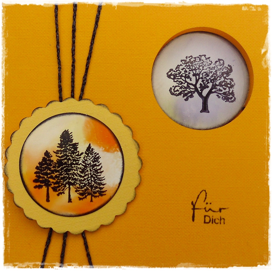 Diesmal habe ich direkt mit zwei oder drei verschiedenen Copic-Stiften die Farbe auf einem quadratischen bzw. runden Stempel aufgetragen und mit Blender eingesprüht und abgestempelt. Danach die Motive in schwarz gestempelt und ausgestanzt und teilweise anschließend mit Amazing Glaze embossed. So entstehen ganz schnell sehr interessante Hintergründe. Daraus sind lauter 4 x 4 Inch-Karten entstanden.