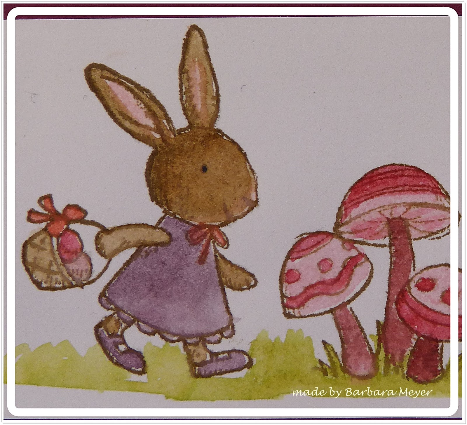 Für diese Osterkarte habe ich das Stempelset Hasenparade aus dem Hauptkatalog verwendet. Mit den Aquapaintern und beliebigen Stempelfarben wurden die Ostermotive coloriert.