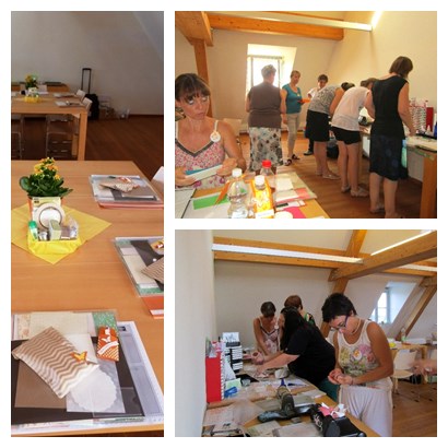 Astrid und ich haben uns im Vorfeld viel Mühe gegeben - die Dekoration hergerichtet, die Materialpakete zusammengestellt und für jedes Projekt eine Anleitung geschrieben - es hat sich gelohnt!