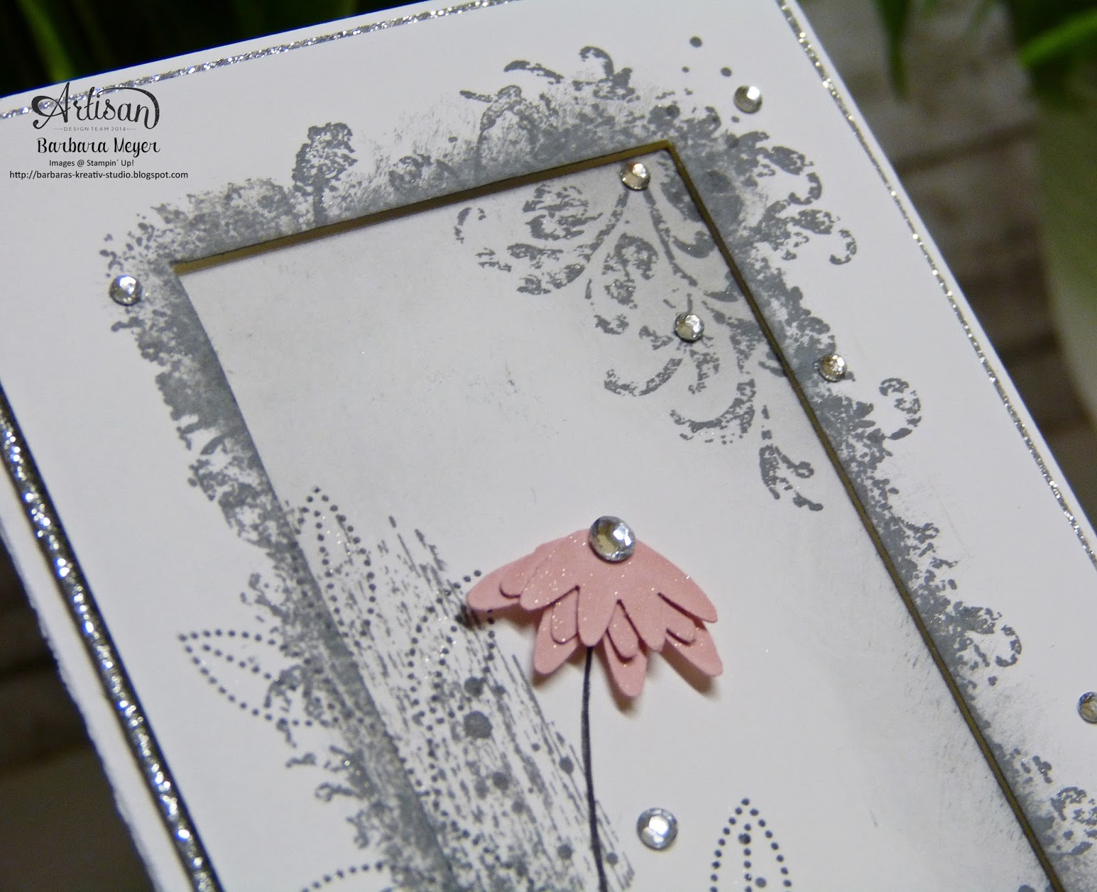 Der silberne Hintergrund ist übrigens mit dem Klebeband (Washi-Tape) aus der Sale-A-Bration!