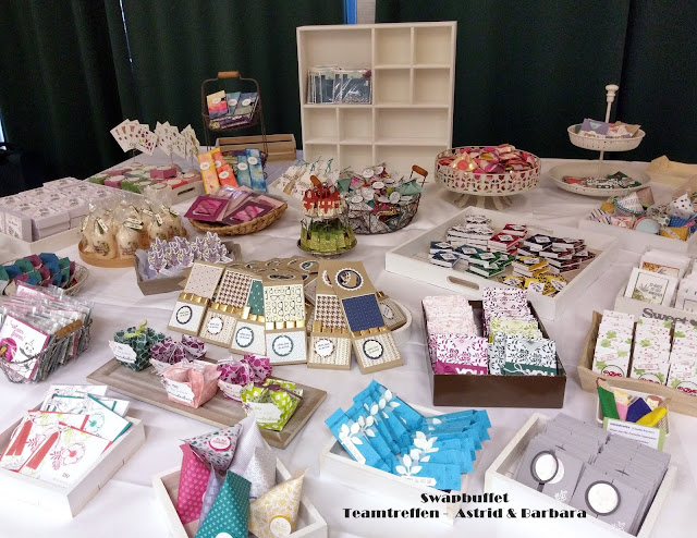 Ich finde es immer so schade, wenn wir während des Tages die Swaps nicht so wirklich betrachten können und so habe ich mir ein Swap-Buffet überlegt und es ist wunderschön und sehr ansprechend geworden und jeder konnte es vor dem Swap-Tausch noch ausgiebig betrachten und fotografieren.